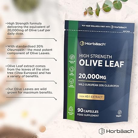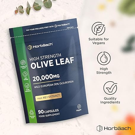 Sản phẩm Olive Leaf Extract Capsules 20,000mg | Wild European 20% Oleuropein | High Strength Supplement | 90 Vegan Capsules | Horbaach đang được bán với giá ưu đãi là $12.9274 tại nước Anh.