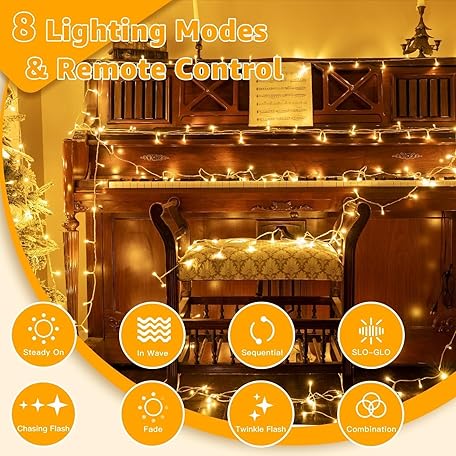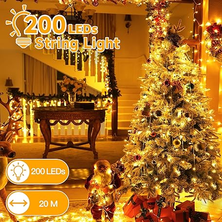 Thông tin sản phẩm Ollny Christmas Tree Lights, 20m 200 LED Outdoor Fairy Light Mains Powered, Waterproof Warm White String Light with Plug,Remote/8 Modes/Timer, Bright Lighting Indoor/Outside/Garden/Xmas Decorations