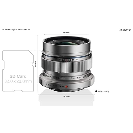 Thông tin sản phẩm Olympus M.Zuiko Digital ED 12 mm F2.0 Lens, Fast Fixed Focal Length, Suitable for All MFT Cameras (Olympus OM-D & PEN Models, Panasonic G-Series), silver