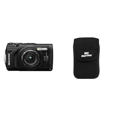 Thông tin sản phẩm OM SYSTEM Tough TG-7 Black Digital Camera, 12MP, Waterproof, Shockproof & MegaGear MG797 Olympus Tough TG-6, TG-5, TG-870, TG-4, TG-860 Ultra Light Neoprene Camera Case, with Carabiner - Black