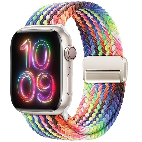 • OMECKY Magnetic Braided Loop Band Compatible with Apple Watch Series 11 10 42mm 9 8 7 6 5 4 40mm 41mm for Women Men, Stretchy Nylon Elastic Sport Strap for iWatch SE 1/2/3, New Pride