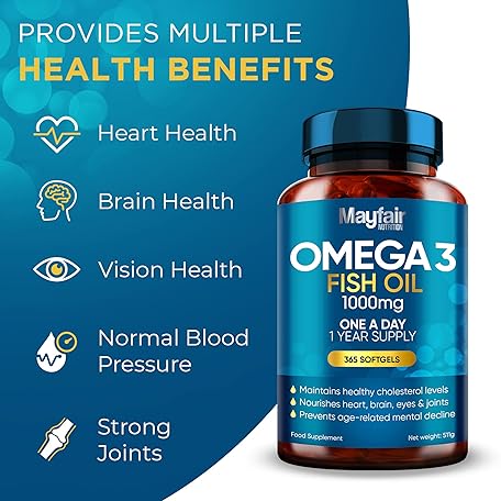 Thông tin sản phẩm Omega 3 1000mg Capsules - 365 Fish Oil Tablets with EPA & DHA - One a Day - Supports Heart, Vision, & Brain Health - 1 Year Supply - Made in UK
