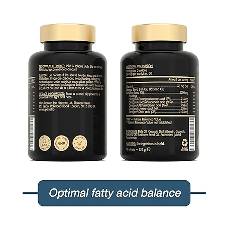 Sản phẩm Omega 3 6 9 Capsules - High Strength 3000mg Triple Potency - Premium Fish Oil, Flaxseed & Sunflower Oil - 90 Easy to Swallow Softgel Tablets - EPA DHA ALA Omega 369 Fatty Acids Nutritional Supplements đang được bán với giá ưu đãi là $21.4621 tại nước Anh.