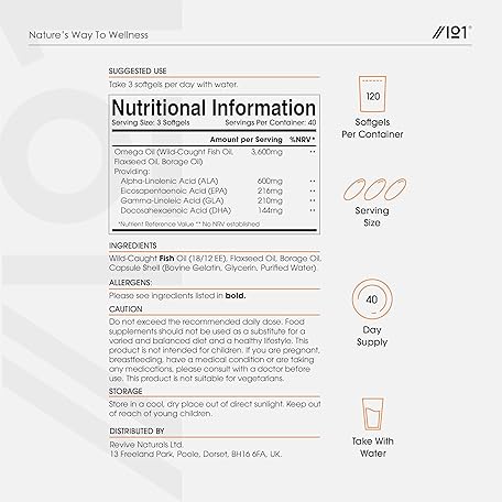 Sản phẩm Omega 3-6-9 Fish Oil 3600mg - 120 Softgels - Wild-Caught Fish Oil with Flaxseed Oil & Borage Oil - Rich in ALA EPA GLA & DHA – No Additives (60 Day Supply) by Alpha01 đang được bán với giá ưu đãi là $21.8109 tại nước Anh.
