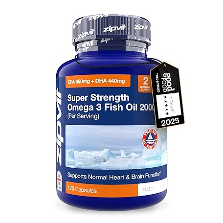 Sản phẩm Omega 3 Fish Oil 2000mg, EPA 660mg DHA 440mg per Daily Serving. 120 Capsules (2 Months Supply). Supports Heart, Brain Function and Eye Health. 2 Capsules Per Serving đang được bán với giá ưu đãi là $14.5079 tại nước Anh.