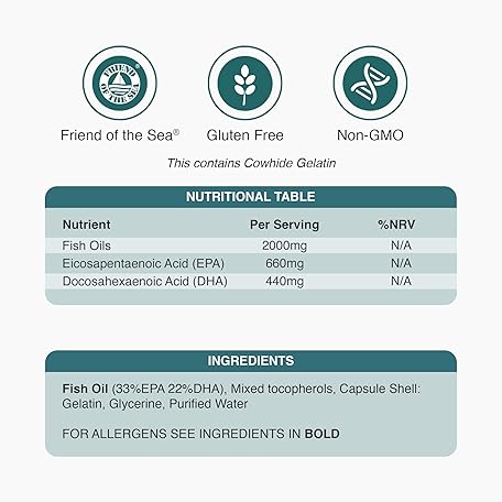 Thông tin sản phẩm Omega 3 Fish Oil 2000mg, EPA 660mg DHA 440mg per Daily Serving. 120 Capsules (2 Months Supply). Supports Heart, Brain Function and Eye Health. 2 Capsules Per Serving