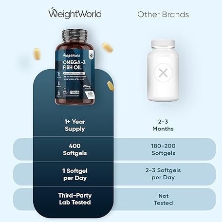 Thương hiệu WeightWorld là cái tên nổi tiếng được rất nhiều khách hàng trên thế giới chọn lựa. Với kiểu dáng đẹp mắt, sang trọng, sản phẩm Omega 3 Fish Oil | 400 Softgels (1+ Year Supply) | 1 Softgel a Day | EPA & DHA | Alternative to Cod Liver Oil Capsules | 1000mg Omega 3 Fatty Acids Supplement là sự lựa chọn hoàn hảo nếu bạn đang tìm mua một món cho riêng mình.