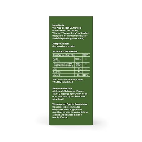 Thông tin sản phẩm Omega 3 Fortified Triglyceride Capsules, 60 Count, Sustainable Wild Alaskan Pollock, Contains Lutein, Zeaxanthin & K2