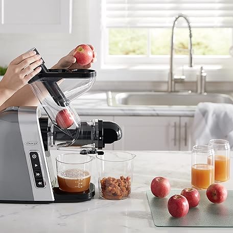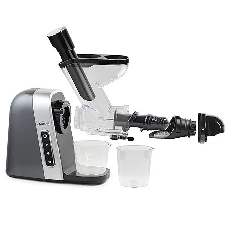 Thông tin sản phẩm Omega MM400GY13 Juicer BPA Free, Slow Masticating High Juice Yield with Wide Mouth Chute, Glass, Gray