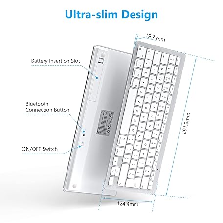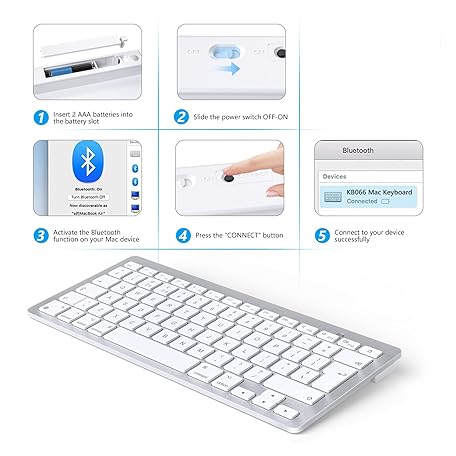 Thông tin sản phẩm OMOTON Bluetooth Keyboard for Mac, Wireless keyboard for Apple MacBook Pro/Air, iMac, iMac Pro, Mac Mini, Mac Pro, QWERTY UK Layout, Silver