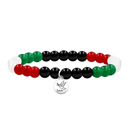 Oneress Palestinian Flag Peace Sign Bracelet - Chalcedony Agate Beaded Peace Dove Charm - Women's Bracelet Adjustable Elastic Rope
