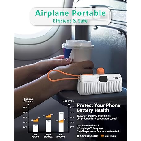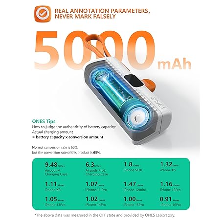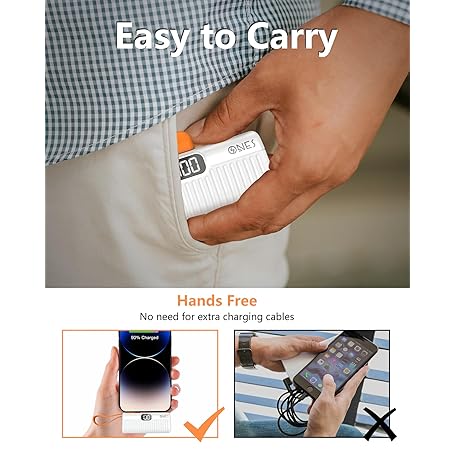 Thông tin sản phẩm ONES 5000mAh Mini Power Bank, 10.5W Dual-Way Quick Charge, Built-in Cables/Stand, Portable Battery Phone Charger for iPhone 16/15/14/1312 Samsung S22/23 Series, lighting Plug & USB C Cable, White