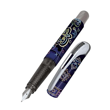 Online College ink pen Game Time, ergonomic fountain pen for school/college, medium nib, soft grip part, for standard ink cartridges, refillable, ideal for beginners, pupils