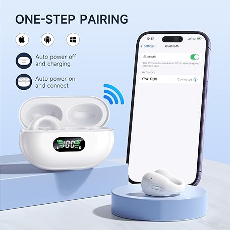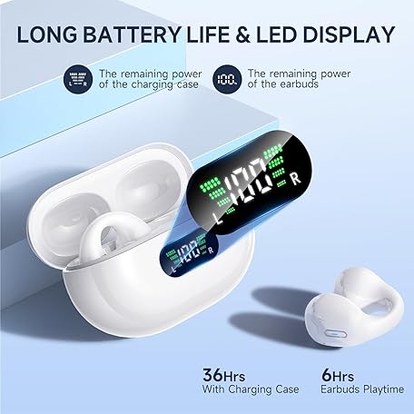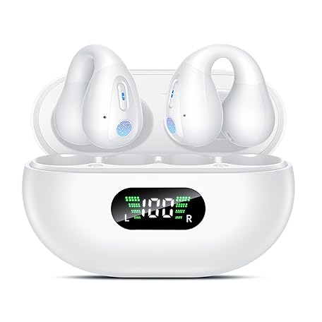 Sản phẩm Open Ear Bone Conduction Headphones,Comfort-Clip On Wireless Earbuds Bluetooth 5.3, Sports Ear Buds with ENC Mic, 36 Hours HlFl Earpods with LED Display Charging Case,lPX7 Running Earphones, White đang được bán với giá ưu đãi là $41.5072 tại nước Anh.