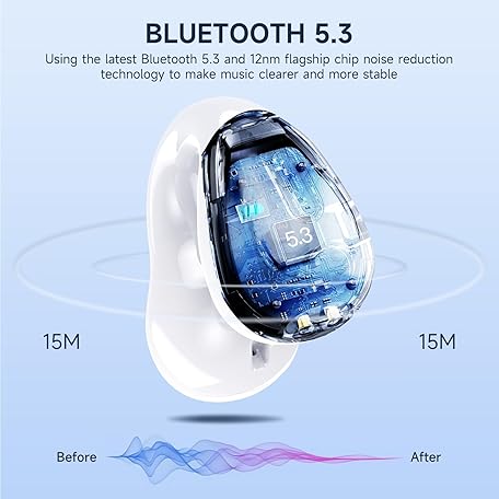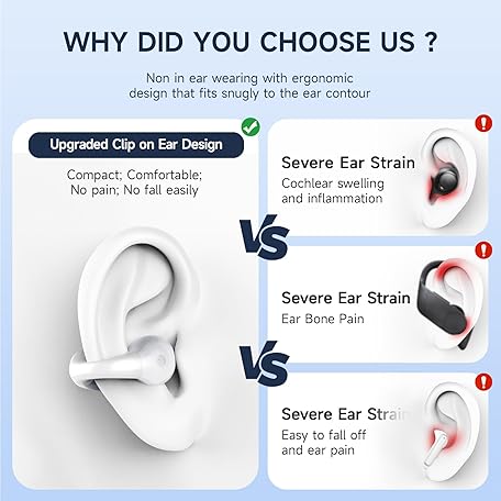 Thông tin sản phẩm Open Ear Bone Conduction Headphones,Comfort-Clip On Wireless Earbuds Bluetooth 5.3, Sports Ear Buds with ENC Mic, 36 Hours HlFl Earpods with LED Display Charging Case,lPX7 Running Earphones, White