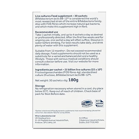 Sản phẩm Optibac Probiotics Bifido & Fibre - Vegan Probiotic & FOS Fibre Supplement to Maintain Regularity - 25 Billion Bacterial Cultures - Most Recommended Brand - 30 Sachets đang được bán với giá ưu đãi là $26.923 tại nước Anh.