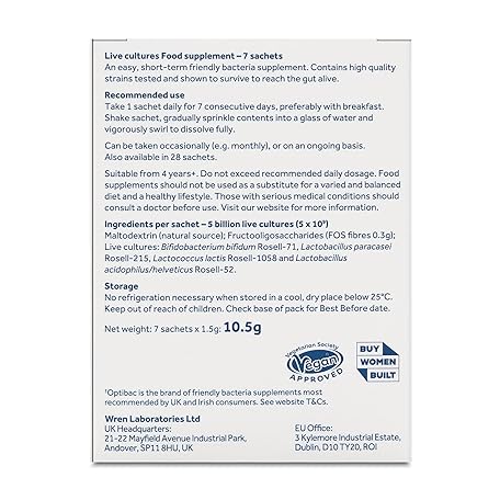 Sản phẩm Optibac Probiotics One Week Flat - Vegan Digestive Probiotic Supplement Powder Suitable for Bloating with 5 Billion Bacterial Cultures - 1 Week Supply, 7 Sachets đang được bán với giá ưu đãi là $13.2326 tại nước Anh.