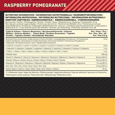 Thông tin sản phẩm Optimum Nutrition Gold Standard BCAA Train + Sustain, Amino Acids Pre Workout Powder, Sports Drink with Vitamin C, Zinc, Magnesium and Electrolytes, Raspberry & Pomegranate Flavour, 28 Servings, 266 g