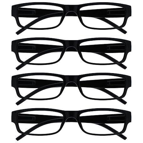 Thông tin sản phẩm OPULIZE ACE Reading Glasses for Women Men, Lightweight Comfortable Narrow Rectangular Frame with Spring Hinges, Scratch Resistant, Black UVR+1.50 (Pack of 4)