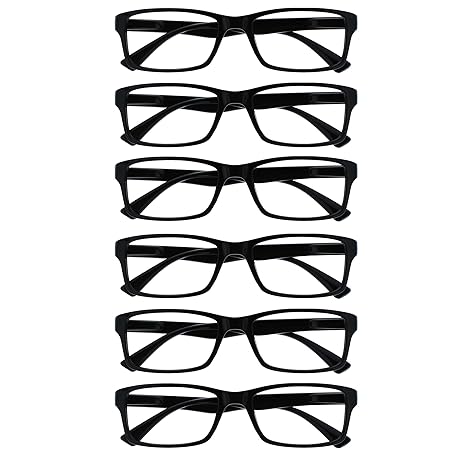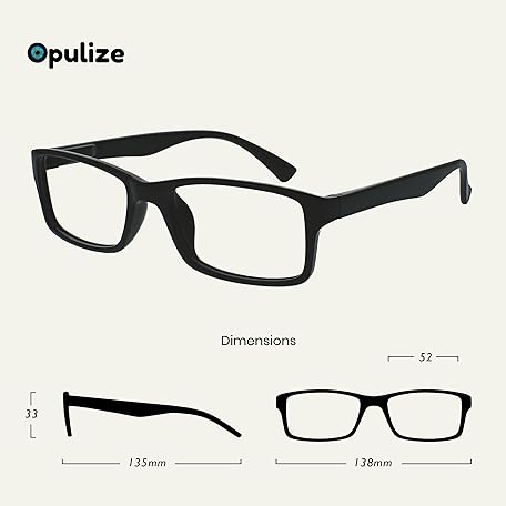 Thông tin sản phẩm OPULIZE PEP Classic Reading Glasses for Women Men, Scratch Resistant Rectangular Frame with Spring Hinges, Black, +2 (Pack of 6)