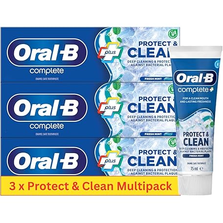 Oral B Protect & Clean - 3 Pack - Whitening Toothpaste Bundle. Oral B Toothpaste Whitening | Plaque Remover for Teeth | MS Bundle with Thank You Card
