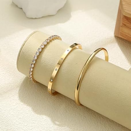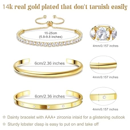 Sản phẩm ORAZIO 3Pcs Gold Bracelet for Women 14K Gold Plated Bangle Cuff Tennis Bracelet Adjustable Stacking Bangle Link Chain Bracelets Gold Jewellery Gifts Set for Women đang được bán với giá ưu đãi là $18.857 tại nước Anh.