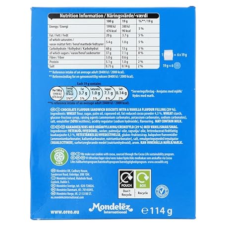 Thông tin sản phẩm Oreo Chocolate Sandwich Biscuit Mini Bags, Classic Chocolate Biscuits With Vanilla Creme Filling, Multipack of 6 x 19 g (Pack of 1)