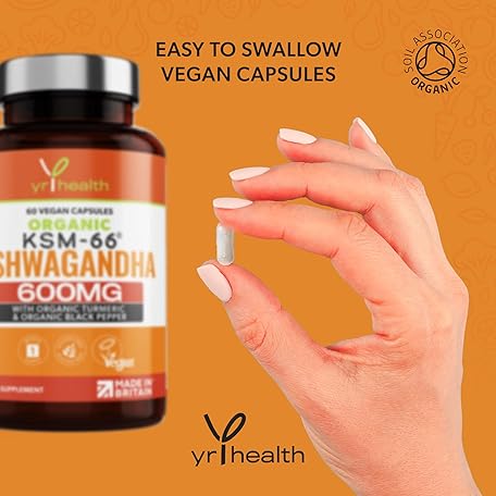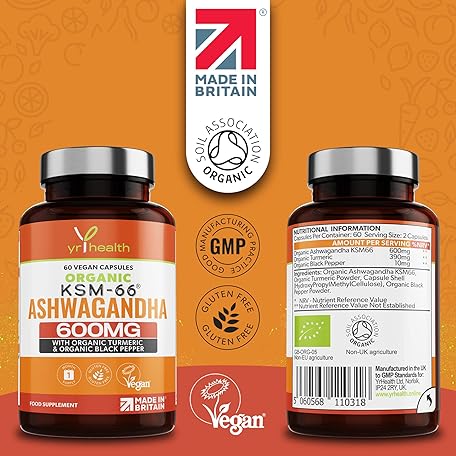 Thông tin sản phẩm Organic Ashwagandha KSM-66 Capsules 5% Withanolides Added Organic Turmeric and Black Pepper, Certified by Soil Association, Vegan Registered Ashwagandha Powder Capsules, Made in The UK by YrHealth