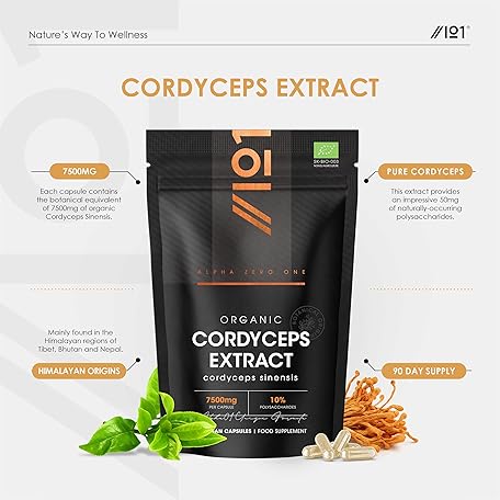Sản phẩm Organic Cordyceps Mushroom Extract 7500mg – High Strength Polysaccharides Supplement – 90 Vegan Capsules (3 Months Supply) – Resealable and Recyclable Pouch – by Alpha01 đang được bán với giá ưu đãi là $14.5297 tại nước Anh.