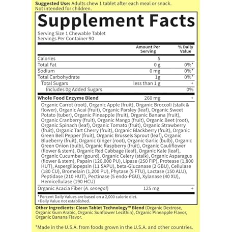 Thông tin sản phẩm Organic Digest Enzymes, Tropical Fruit Flavor, Gluten Free, Dairy Free, 90 Chewables