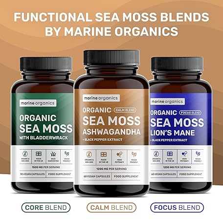 Thương hiệu Marine Organics là cái tên nổi tiếng được rất nhiều khách hàng trên thế giới chọn lựa. Với kiểu dáng đẹp mắt, sang trọng, sản phẩm Organic Irish Sea Moss & Ashwagandha Capsules - Calm Blend - 60 Capsules - Ashwagandha High Strength 1200mg w/Black Pepper - Immunity & Stress Support - Vegan, Non-GMO, UK Made, Certified Organic là sự lựa chọn hoàn hảo nếu bạn đang tìm mua một món cho riêng mình.