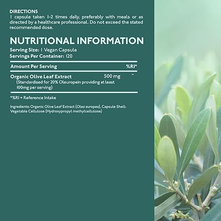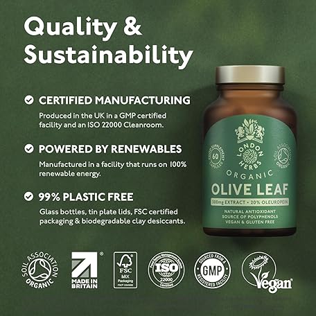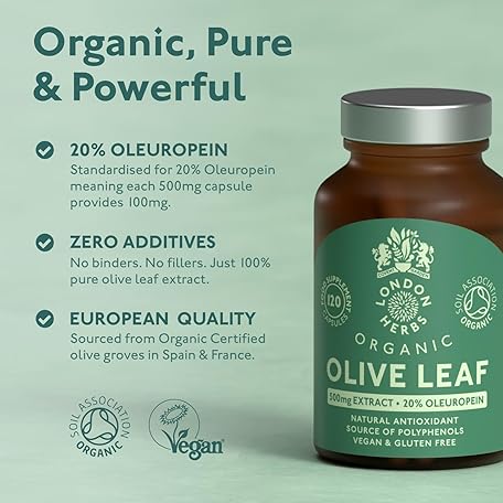 Sản phẩm Organic Olive Leaf Extract 500mg | Standardised for 20% Oleuropein | 60 Vegan Capsules | Made in The UK đang được bán với giá ưu đãi là $30.4764 tại nước Anh.