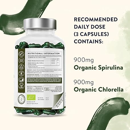 Sản phẩm Organic Spirulina and Chlorella Capsules - Spirulina Powder and Chlorella Powder - Broken Cell Wall - 1800mg per Serving - 200 Capsules - Vegan đang được bán với giá ưu đãi là $27.0865 tại nước Anh.