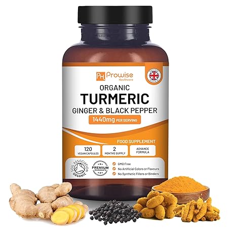 Sản phẩm Organic Turmeric Capsules High Strength 1440mg | 120 Capsules with Black Pepper, Ginger & Active Ingredient Curcumin (2 Month Supply) | Made in UK by Prowise Healthcare đang được bán với giá ưu đãi là $14.6278 tại nước Anh.