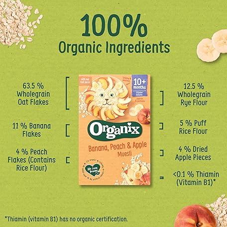 Thông tin sản phẩm Organix Banana, Peach & Apple Organic Baby Muesli, 10+ Months, 200 g Box (Pack of 4)