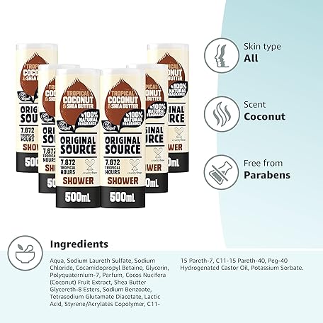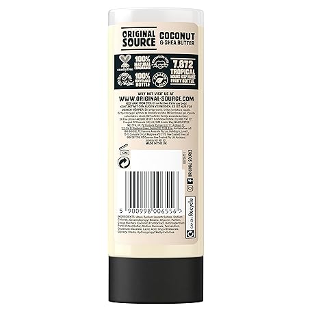 Thông tin sản phẩm Original Source Coconut and Shea Butter Shower Gel, 100 Percent Natural Fragrance, Vegan, Cruelty Free, Paraben Free, Bulk Buy, Pack of 6 x 500 ml