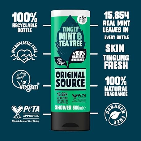 Sản phẩm Original Source Mint & Tea Tree Shower Gel, 100 Percent Natural Fragrance, Vegan, Cruelty Free, Paraben Free, Bulk Buy, Pack of 6 x 500 ml đang được bán với giá ưu đãi là $15.0202 tại nước Anh.