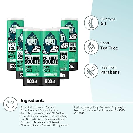 Thông tin sản phẩm Original Source Mint & Tea Tree Shower Gel, 100 Percent Natural Fragrance, Vegan, Cruelty Free, Paraben Free, Bulk Buy, Pack of 6 x 500 ml
