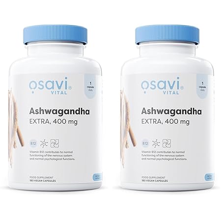 Osavi Ashwagandha Extra 400 mg – 180 Vegan Capsules | Stress & Wellbeing Support | Vegan Capsules with Ashwagandha & B12 to Enhance Stress Resilience | Mental Balance & Reduce Fatigue (Pack of 2)