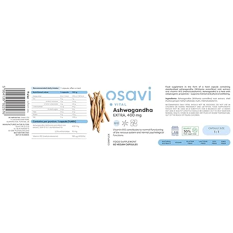 Osavi Ashwagandha Extra 400 mg – 60 Vegan Capsules | Stress & Wellbeing Support | Vegan Capsules with Ashwagandha & B12 to Enhance Stress Resilience | Mental Balance & Reduce Fatigue