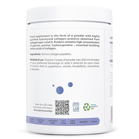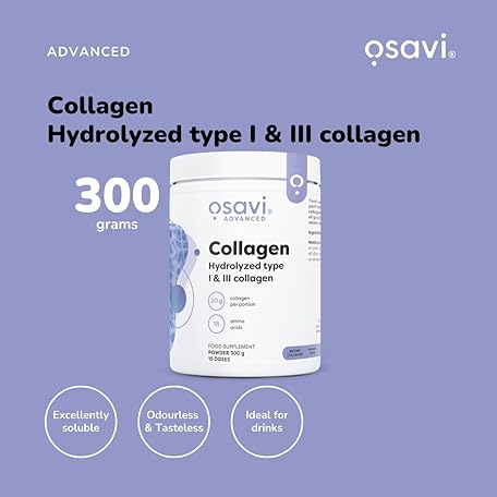 Thông tin sản phẩm Osavi Collagen Peptides, Hydrolyzed Type 1 & 3 – Powder 300g | 20g Collagen per Serving | 18 Amino Acids, Including Glycine, Proline | Supports Muscles and Bones | Neutral Taste | Easily Soluble