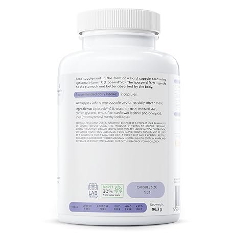 Thông tin sản phẩm Osavi Liposomal Vitamin C – 120 Vegan Capsules | Liposomal Vitamin C (Liposovit®–C) for Enhanced Absorption | Supports Immune Function, Collagen Formation, and Energy Metabolism