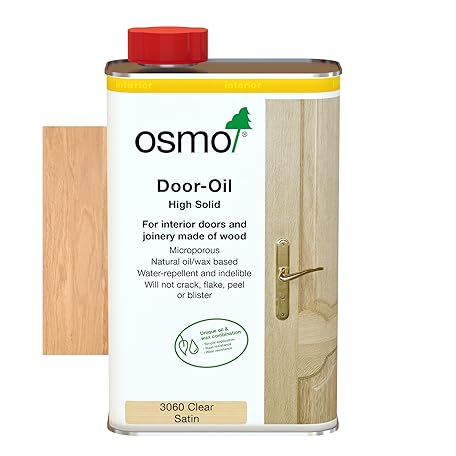 Osmo Door Wood Wax Oil 3060, Clear Satin Finish, 1L - Durable Oil for Doors, Frames and Joinery, Water-Resistant, Wood Treatments - Ideal for Oak, Pine, Spruce, Beech & More