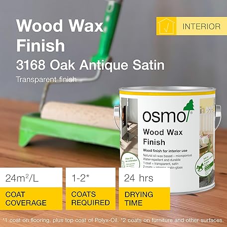 Thông tin sản phẩm Osmo Wood Wax Finish 3168, Oak Antique Satin Finish, 2.5L - Durable Furniture Wax for Wooden Furniture, Water-Resistant Floor Wax, Wood Treatments - Ideal for Oak, Pine & More