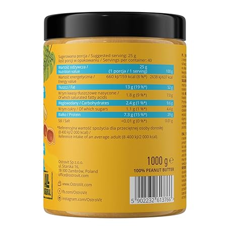 Sản phẩm OstroVit 100% Peanut Butter (1000g) Smooth đang được bán với giá ưu đãi là $10.4749 tại nước Anh.