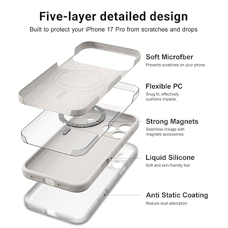 OTOFLY Magnetic for iPhone 17 Pro Case,Compatible with Magsafe,Classic Liquid Silicone Mobile Phone Case,Integrated Camera Control Button,Anti-Scratch Microfiber Lining,Stone