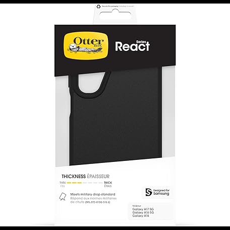 Thông tin sản phẩm OtterBox React Series Case for Samsung Galaxy A17 5G/A16/A16 5G, Shockproof, Drop proof, Ultra-Slim, Protective Thin Case, Tested to Military Standard, Black