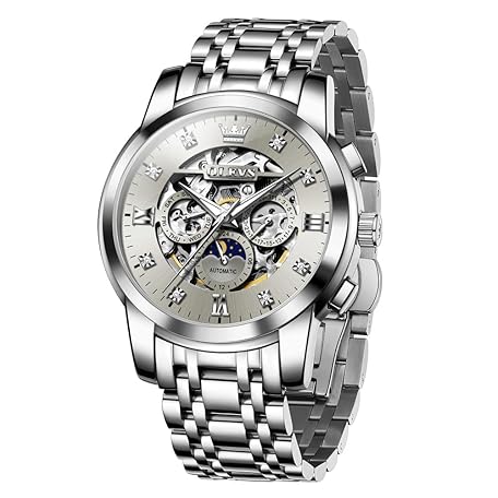 OUPINKE Mens Watches Fashion Sport WristWatches Multifunction Chronograph Analog Quartz Luminous Waterproof Calendar Stainless Steel Bracelet