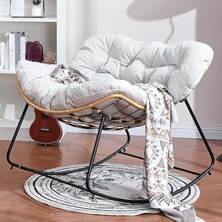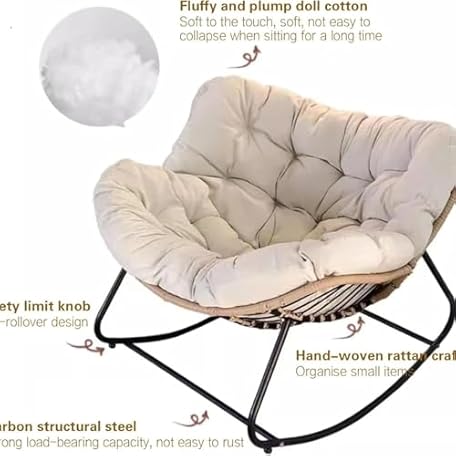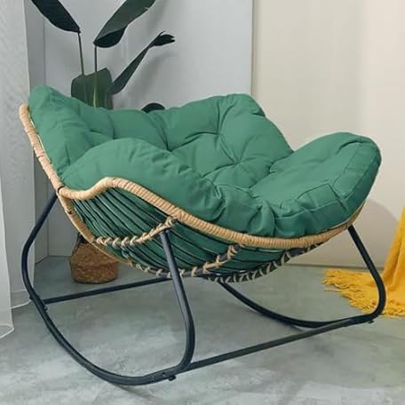 Thông tin sản phẩm Outdoor Rocking Chair – Oversized Stainless Steel Green Velvet Cushion Rocking Egg Chair for Adults and Children, Ideal for Garden, Bedroom, Living Room, Terrace, with Rattan Accents (Green,Large)