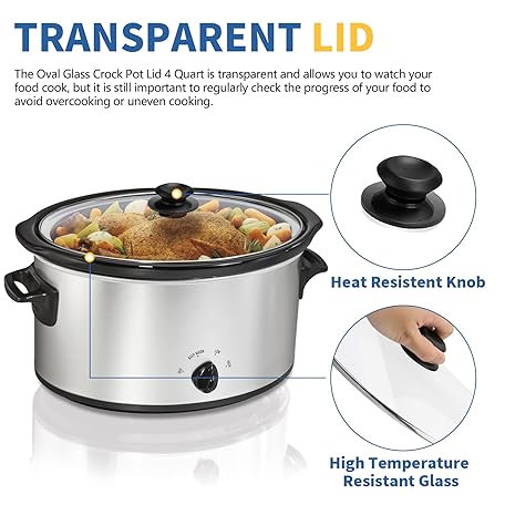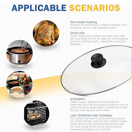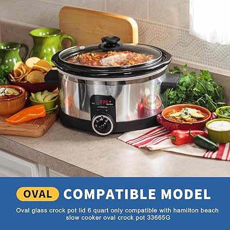 Thông tin sản phẩm Oval Glass Crock Pot Lid 6 Quart Replacement for Hamilton Beach Slow Cooker 6 qt, Hamilton Beach Programmable Slow Cooker Replacement Parts Compatible with Hamilton Beach Crock Pot 33665G, 1